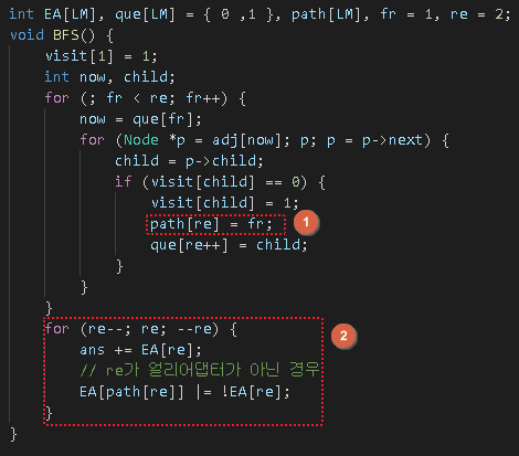 int EA[LM], que[LM] = { 0 ,1 }, path[LM], fr = 1, re = 2;