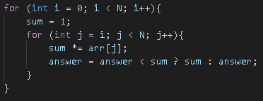 ① N < 10,000이하이므로 완전탐색으로 모든 부분수열의 곱을 구합니다.