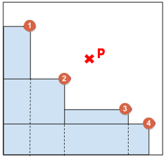 ①~④ 좌표가 존재하는 상태에서 새로운 P(a, b)가 들어왔다고 가정.