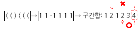 연산 결과 누적합을 구해보면 ( ( ( ( ) ( → 1 1 1 1 -1 1 → 누적합: 1 2 3 4 3 4