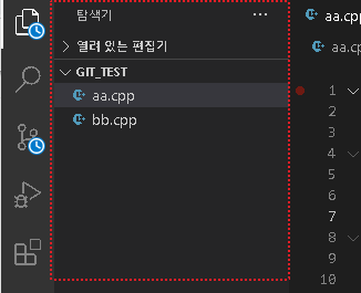 (좌측) 사이드바 열어서 커서 Focus : Ctrl + Shift + E