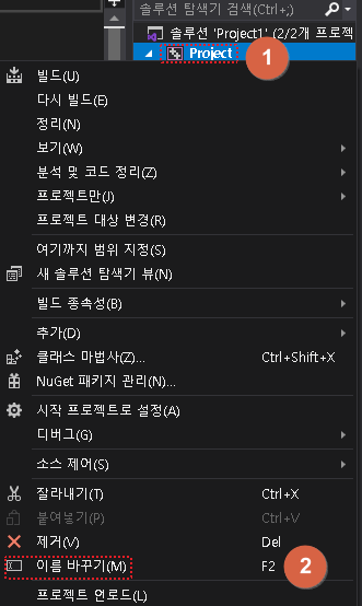 ▶ [프로젝트] 우클릭 - [이름 바꾸기(F2)]