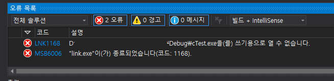 Visual Studio로 작업하다보면 다음과 같이 LNK1168 오류가 발생하는 경우가 있습니다.