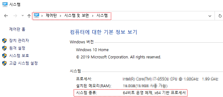 운영체제(OS) bit 확인 방법