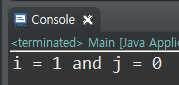 System.out.println("i = " + i +" and j = " + j );