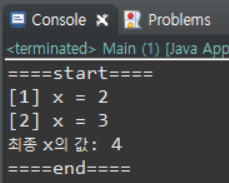 System.out.println("최종 x의 값: " + x);