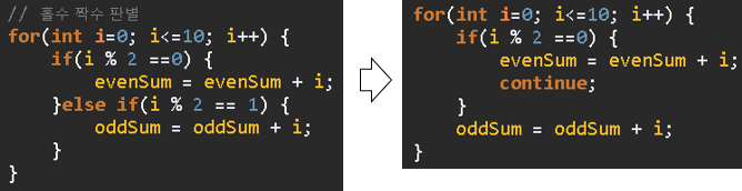 ex) continue를 통한 간결한 코드