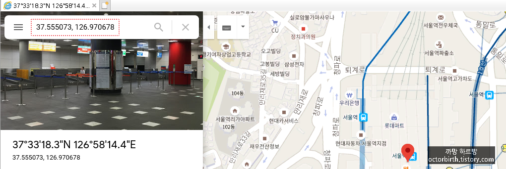 위도 / 경도를 선택하는 창이 나올 때,