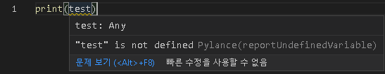 현재는 pylint가 적용되지 않았기에 아래와 같은 문구 메시지가 있다.