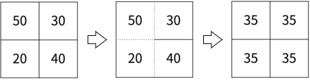 연합의 크기가 4이기 때문에, 각 칸의 인구수는 140 / 4 = 35명이 되어야 한다.