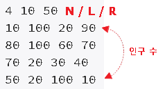 ① 인접한 두 지점의 [인구 차이]가 L명 이상, R명 이하라면 두 지점은 하루동안 연결된다.