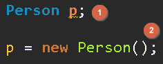 그러나 자바에서는 레퍼런스 변수를 생성한 것인지 Person 객체가 생성된 것은 아니다.