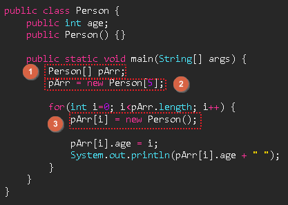 ① 객체 배열을 선언한다. (객체 배열에 대한 레퍼런스 변수 pArr를 선언)