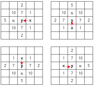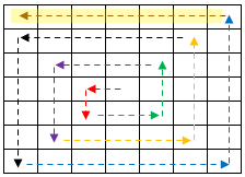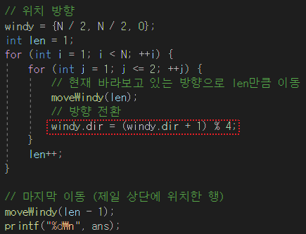 토네이도의 방향을 2번씩 특정 거리만큼 움직이고 방향을 전환합니다. ← ↓ → ↑