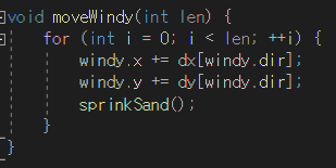 x → y에서 토네이도의 위치를 변경하고, 그에 따라 모래를 흩뿌립니다.