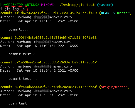 Commit Hash는 git log 명령어로 확인할 수 있다.