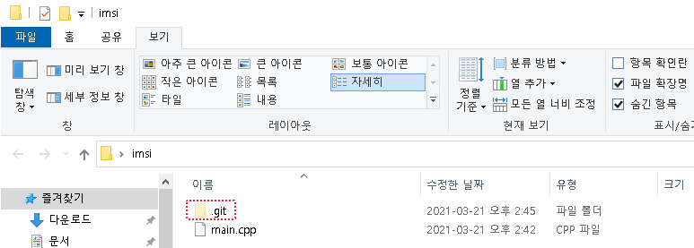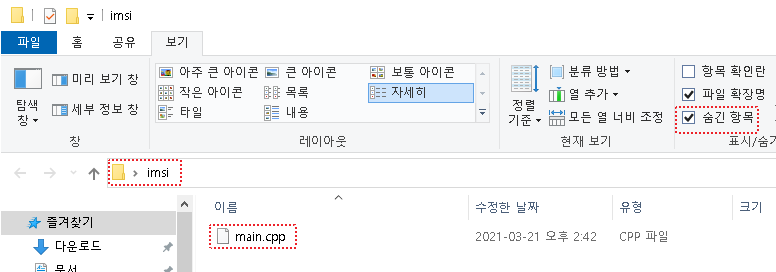 "imsi"라는 폴더에 main.cpp만 존재하는 상태이다.