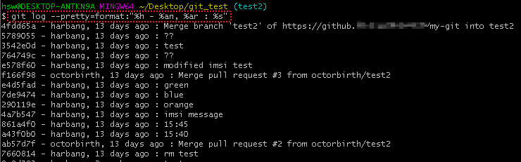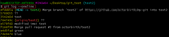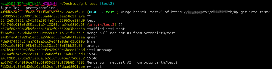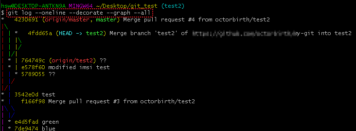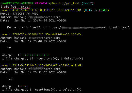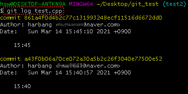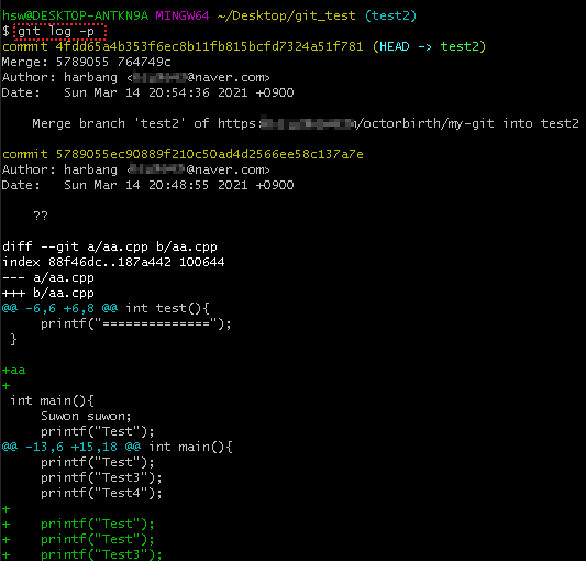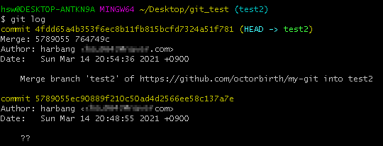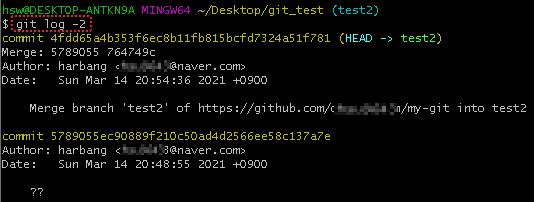 - 본인이 Commit 했던 것이나 git clone 혹은 git pull 해서 받은 저장소의 기록까지 확인할 수 있다.