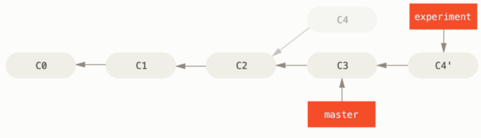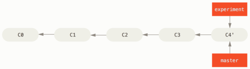 Rebase 할 브랜치(experiment)가 합칠 브랜치(master)가 가리키는 commit을 가리키게 하고