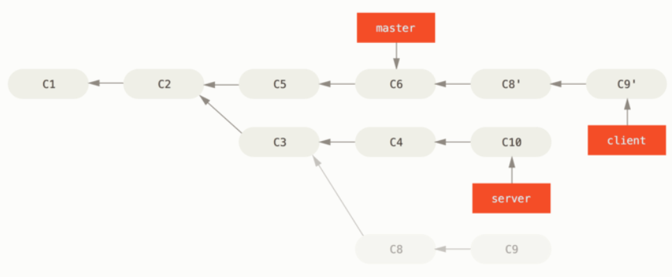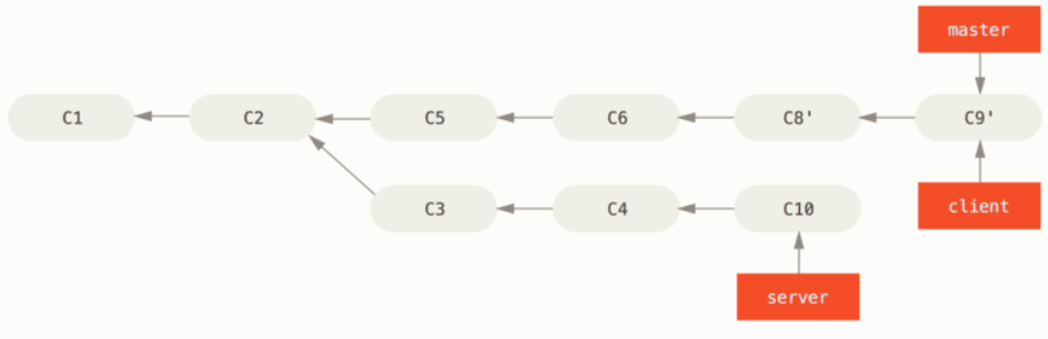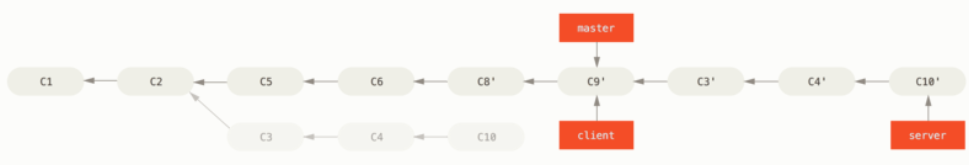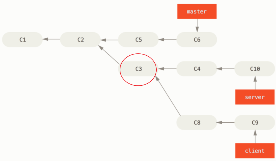 master 브랜치부터 server 브랜치와 client 브랜치의 공통 조상 commit(C3)까지