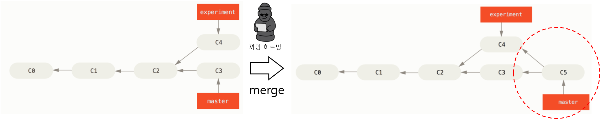 3-way merge로 새로운 commit (C5)을 만들어 낼 수 있다.