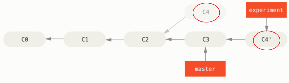 C4와 C4'의 적용 내용은 같더라도 서로 다른 commit 이다.