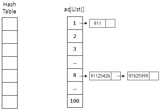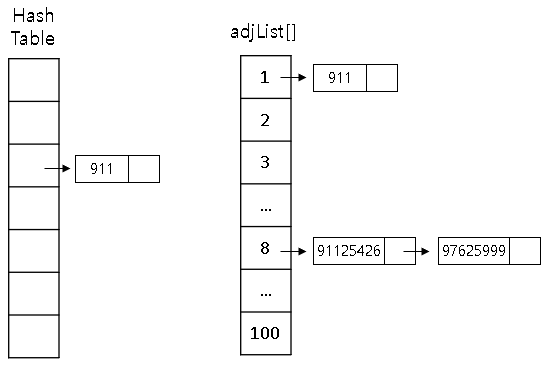 adjList[]에는 길이별로 문자열이 저장됩니다.