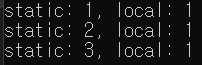 - But, 해당 함수가 반환되면 소멸되지 않고, 처음 한번 초기화되고