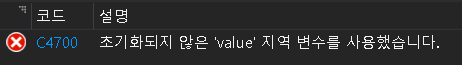 함수{ } 내부에 선언된 변수를 초기화 하지 않고 접근시 C4700 Error 발생