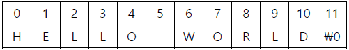 문자열은 컴퓨터 메모리 구조상에서 마지막에 널(NULL) 값을 포함.