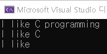 scanf는 "i am c programmer"를 입력해도 공백으로 구분하기 때문에 "i" 만 입력받게 됩니다.
