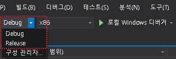 Visual Studio는 아래 이미지와 같이 컴파일 옵션을 설정할 수 있다.