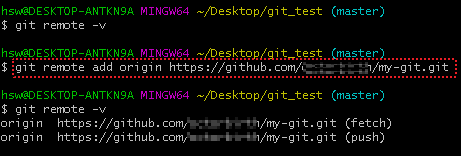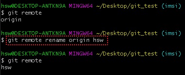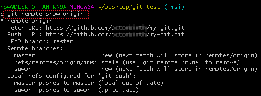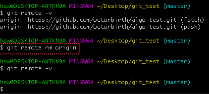 연결된 원격(Remote) Repository 이름 + URL 확인