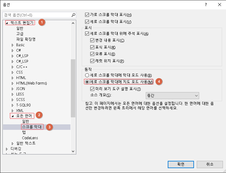 Visual Studio 소스맵 설정 (세로 스크롤)