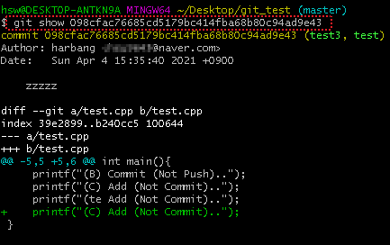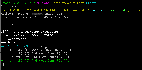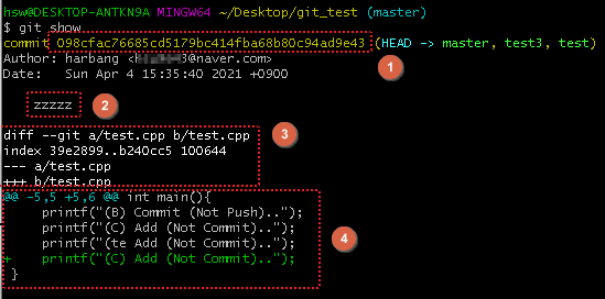 git show는 조금 더 Commt의 상세정보를 확인하는것에 차이가 있다.