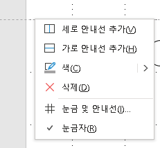 상단 - [보기] 탭에서 "눈금선" / "안내선" 설정