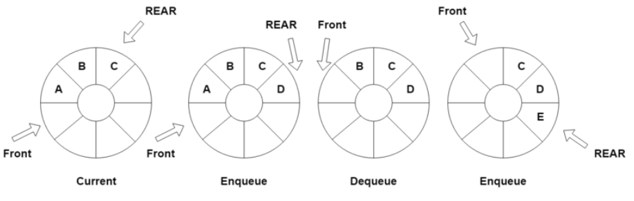 ex) Queue Size가 5일 때, "rear + 1 % 5" 로 처리된다.