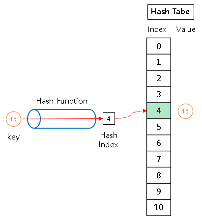 hash(15) = 15 mod 11 = 4