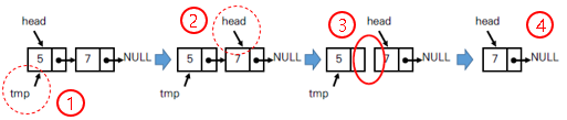 ④ 이제 tmp 가 가리키는 노드를 삭제한다.