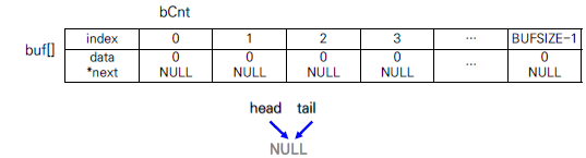 - 반환된 buf[0]의 주소를 head와 tail 포인터 변수에 저장