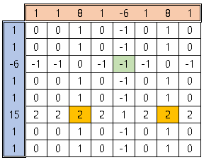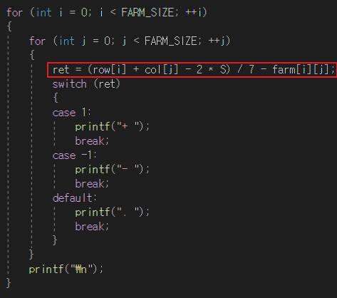ret = (row[i] + col[j] - 2 * S) / 7 - farm[i][j];