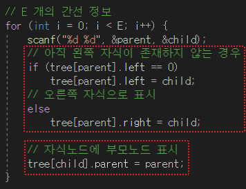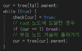 - 공통 조상을 탐색하기 위해 부모노드 표시