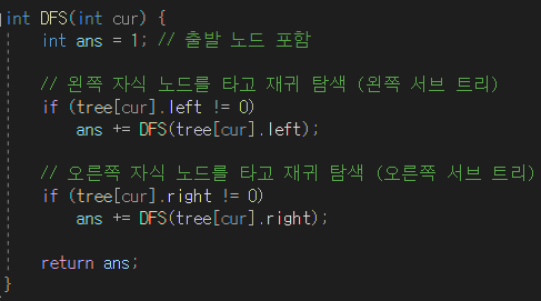 // 해당 노드를 기준으로 서브트리 크기 조사
