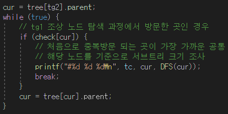 ④ 찾은 공통 조상으로 서브트리 크기 확인