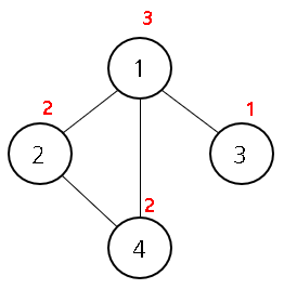 (각 도시에 남아있는 도로 개수는 {빨간 숫자}로 표시)