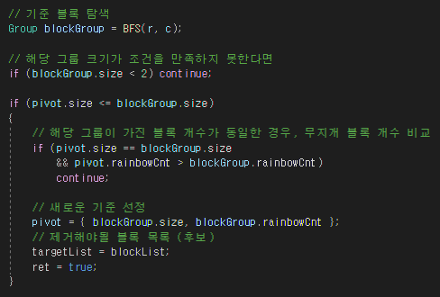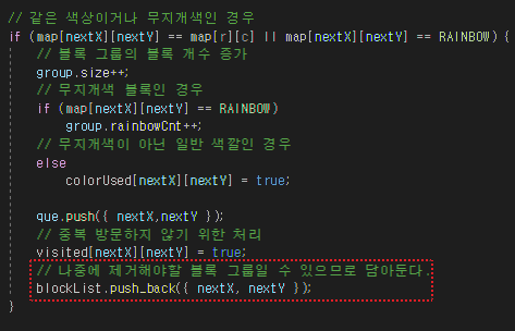 - BFS() 할 때, 그룹을 형성한 블록들을 vector에 저장