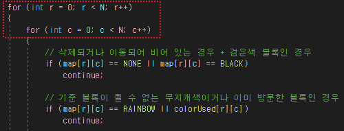 if (map[nextX][nextY] == map[r][c] || map[nextX][nextY] == RAINBOW) {