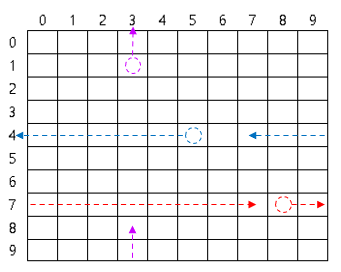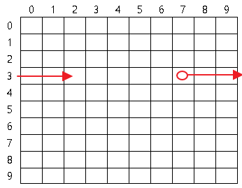 ▶ 10 × 10 크기의 map[10][10] 변수가 주어지고, 인덱스 범위는 0 ~ 9 이다.