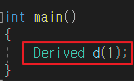 아래 Code를 보면 main문에서 인자가 있는 파생 클래스를 호출했다.