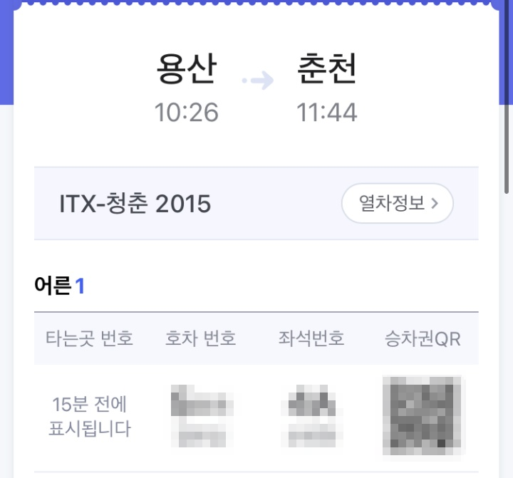 여행 느낌을 살리기 위해 ITX 청춘열차를 이용했습니다.